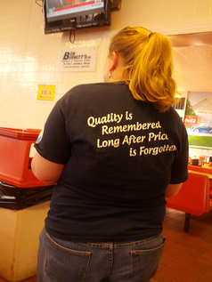 Recently I was eating at a local restaurant and I happened to notice what was written on the back of the servers t-shirts. It's obvious that I'm not the first person to discuss this very topic and it does give one pause to think....and think HARD....about it's meaning. Look closely at the photo below...I think you'll understand that both of the photos are expressing the same thing.