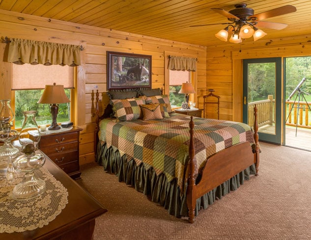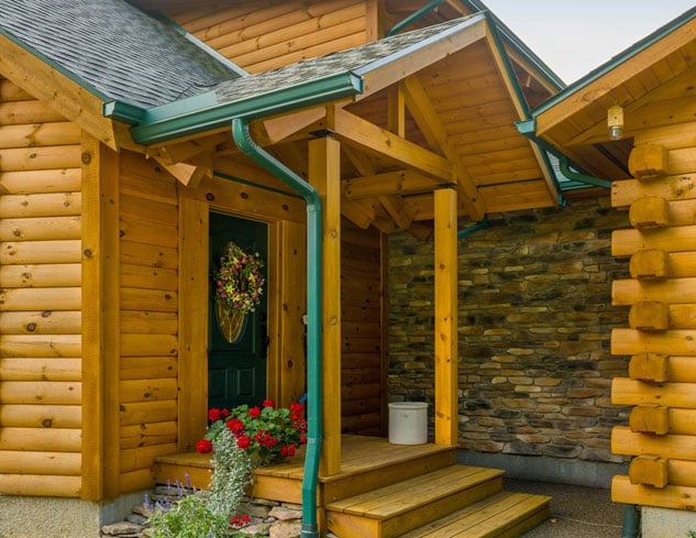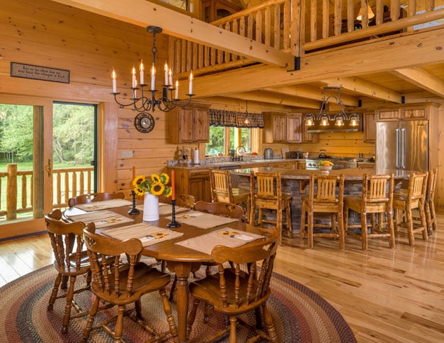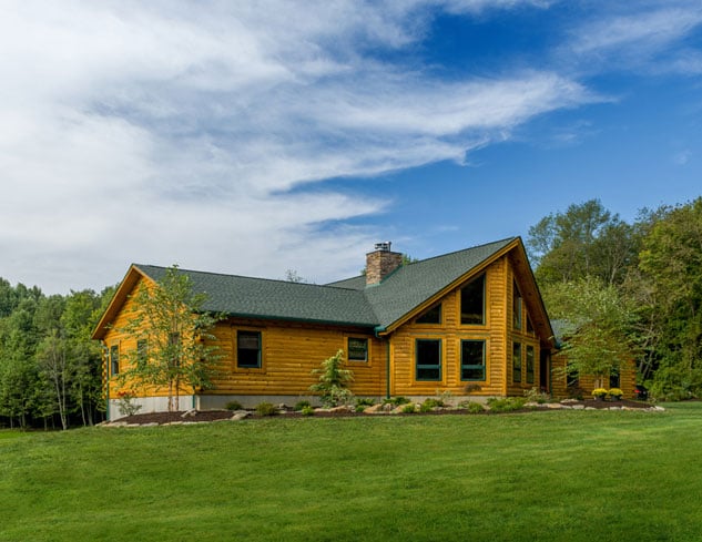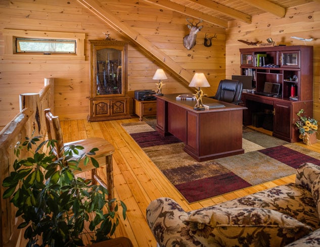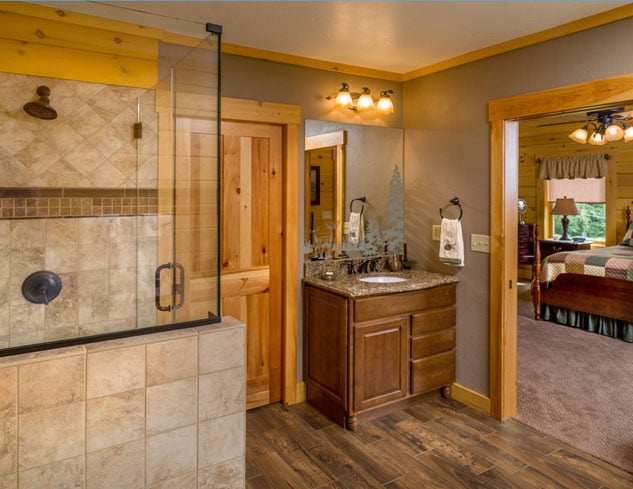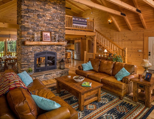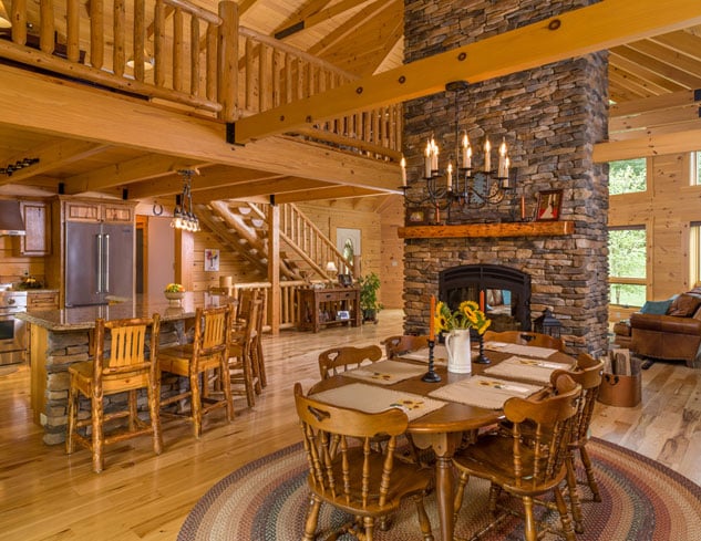 Stunning is an accurate description of the Custom Reinhold log home design. This home sits majestically with the prowl pointing skyward as the large windows invite the outside in. A cathedral ceiling rises to a loft that overlooks the dining room and great room—the perfect place to take in the earthiness of the wood. The loft could serve as a home office or entertainment area. A floor-to-ceiling, two-sided fireplace adds grace, texture and warmth to the spacious, open living area. Seek solitude within your own home in the master bedroom, the master bath, and slip out the sliding glass door to a private deck. This custom log home floor plan includes a second bedroom with ample closet space, a second bath, two porches and a deck, and a large 2-car garage.