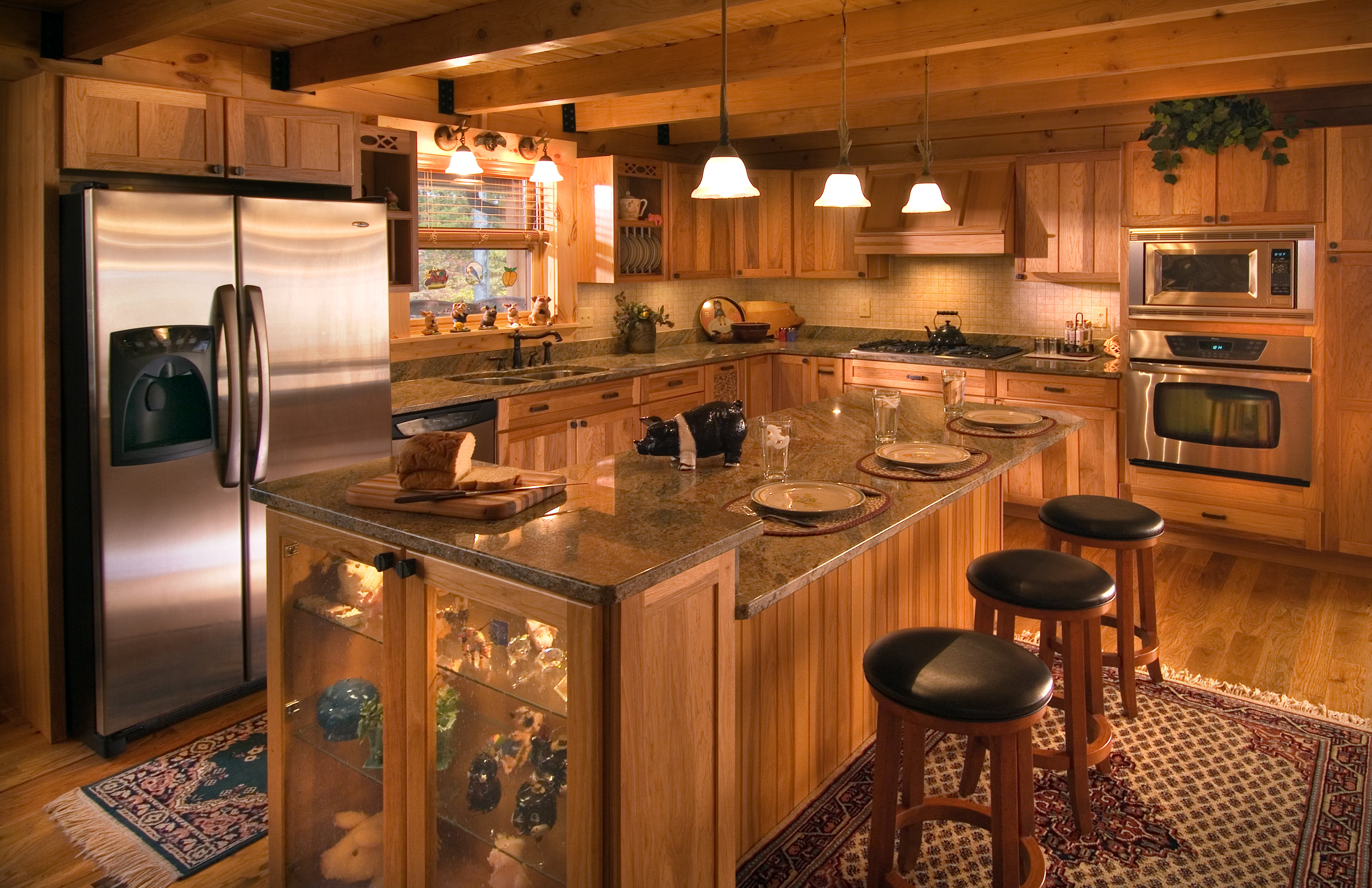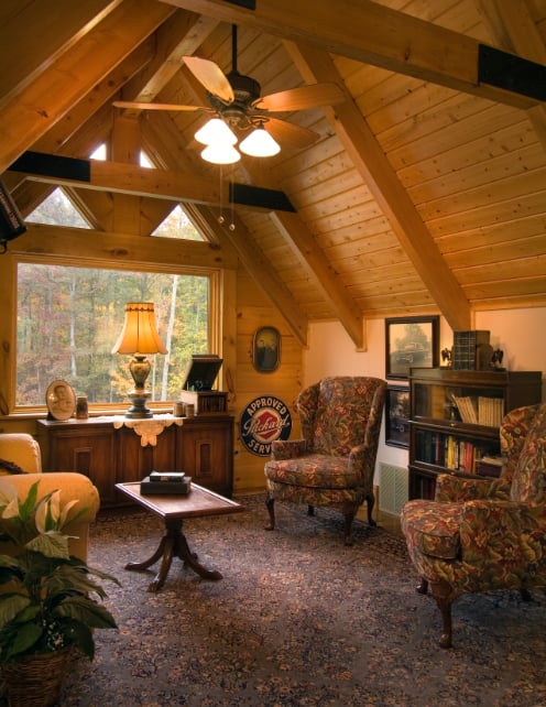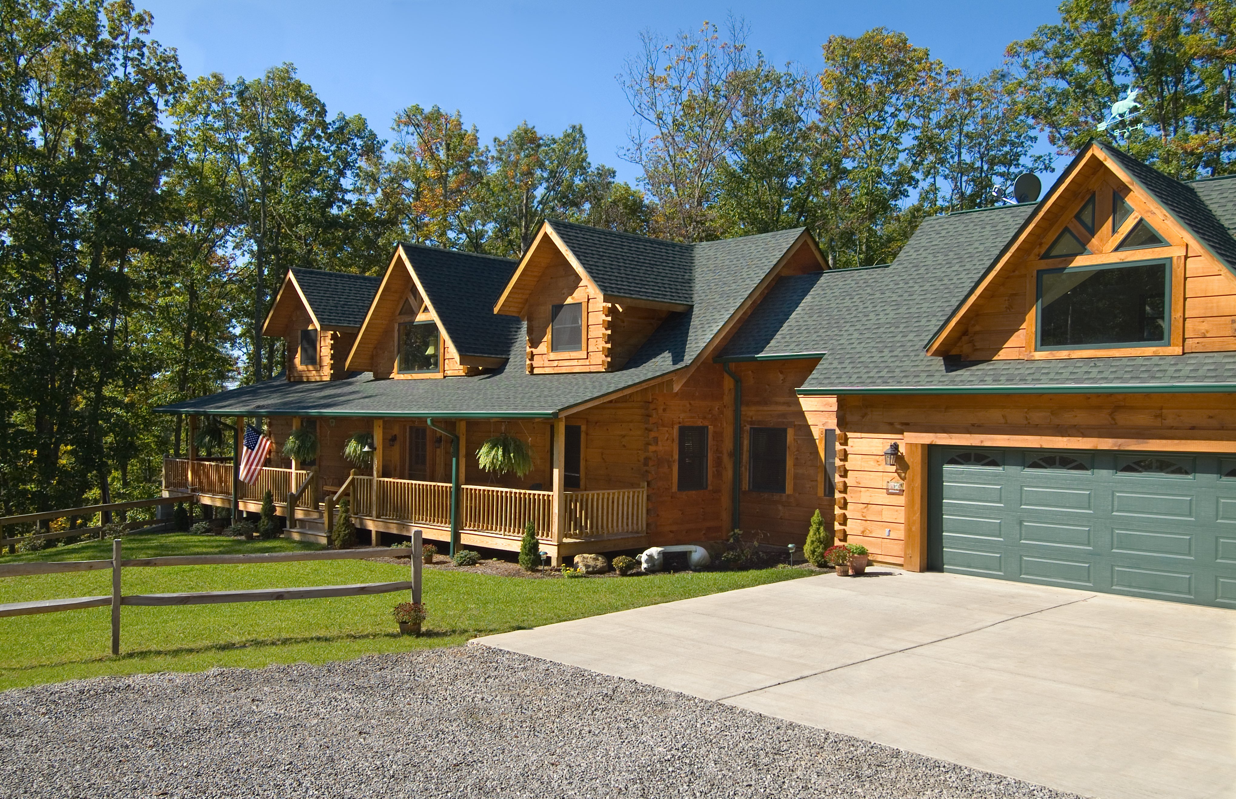 The Fairmont log home is a one and one half story charmer and incorporates many stylish features including three distinctive dormers across the front of the house. The dormers provide additional headroom for the second floor bedrooms and loft, with the bonus of natural light. The living room ceiling offers an intersecting roof and a wall of windows and optional gable glass which helps bring the outdoors inside. This log cabin floor plan would be great facing the water or the mountains and add many hours of peace to a hectic day. A breezeway with utility room and half bath connect the two car garage with the main house and the high pitch roof on the garage make optional living/storage space worth considering.