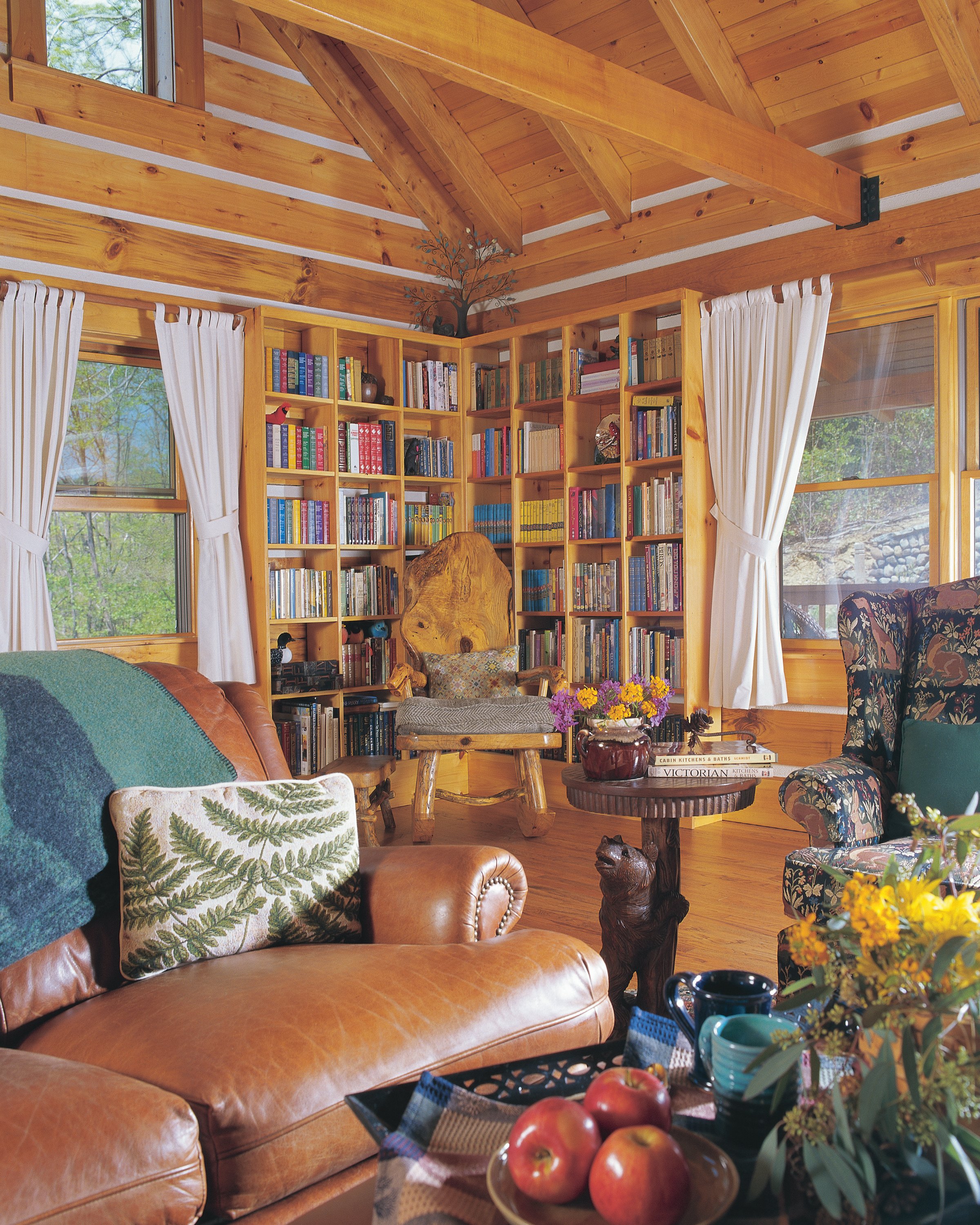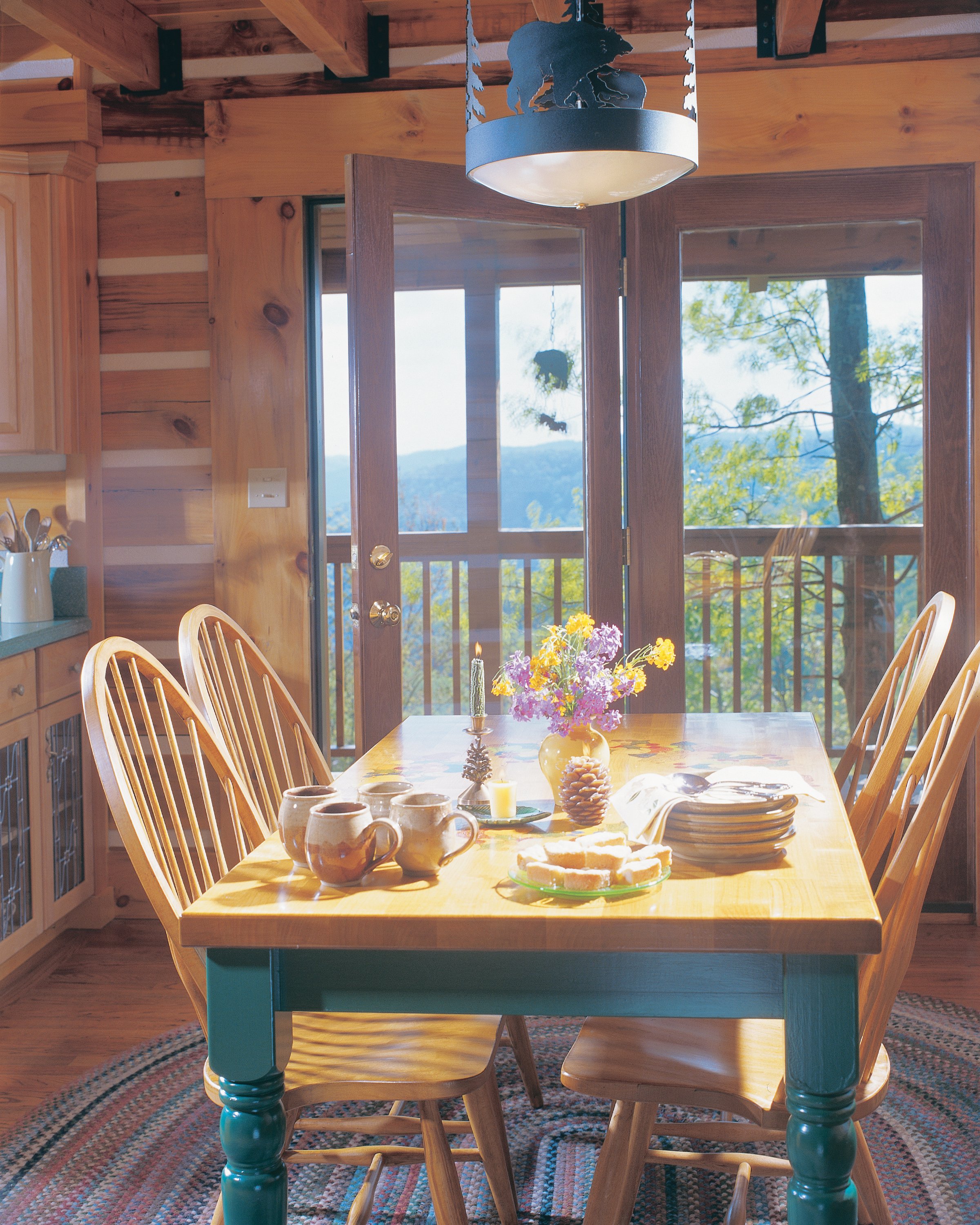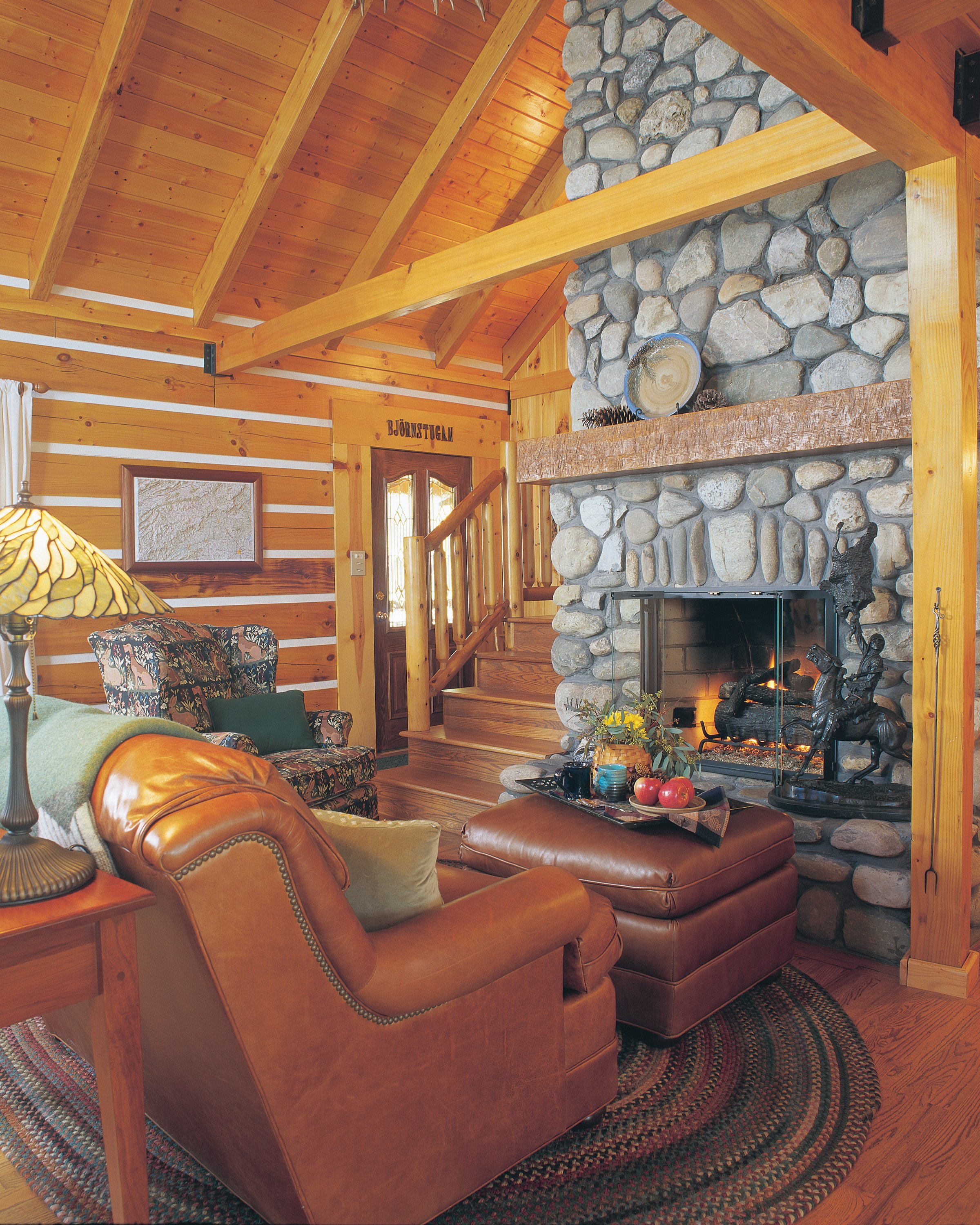 The Jefferson log home is a one and one half story design that is enhanced with many stylish features in an all-time traditional floor plan. It has three bedrooms, two and one half bathrooms, and an open living space featuring open beam A-style roofline. The main floor bedroom provides privacy with an adjacent bath. The kitchen and handy utility area open to a deck. Wide porches multiply outdoor living area for entertaining.