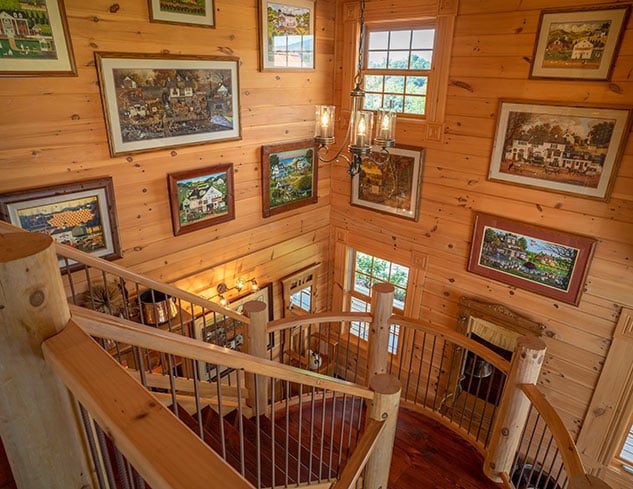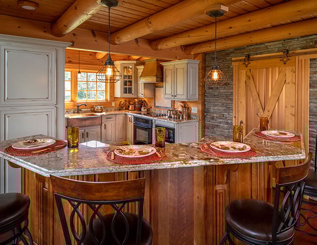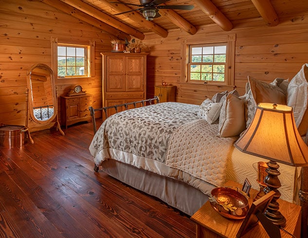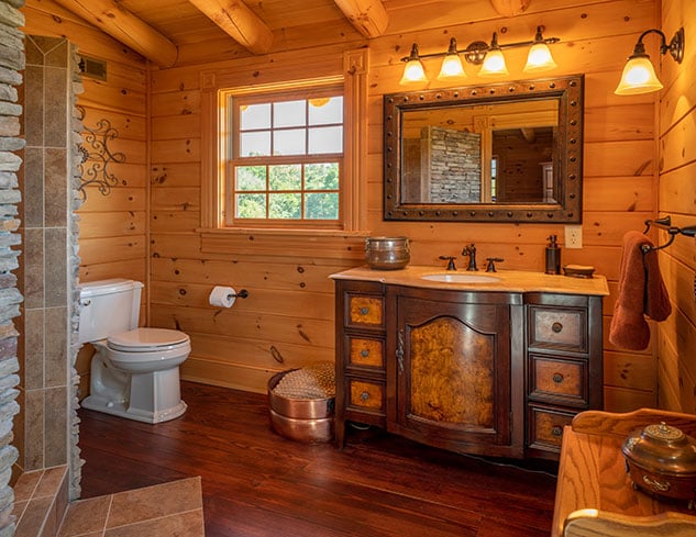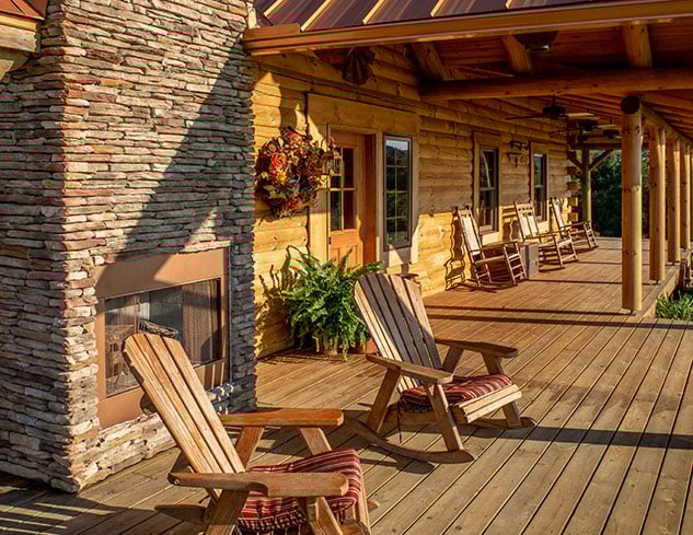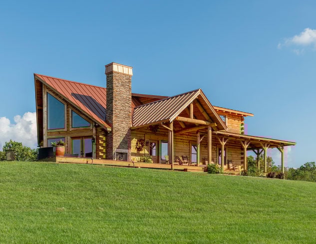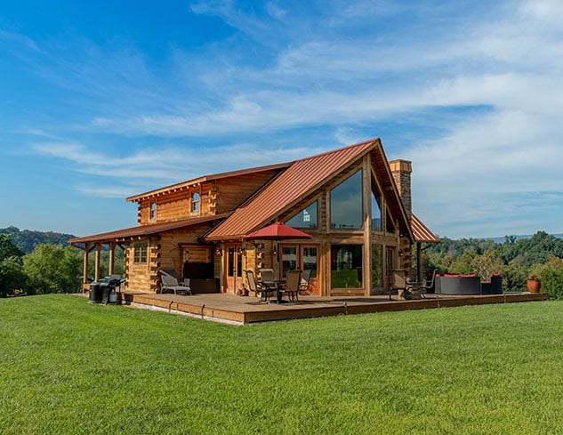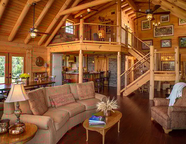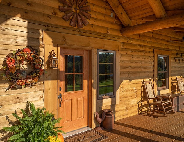 This log cabin is smartly organized and designed to fit snugly onto a smaller lot. The expanse of glass windows across the front and the optional gable glass bring the outdoors in and allow full advantage of the views across the open deck.
