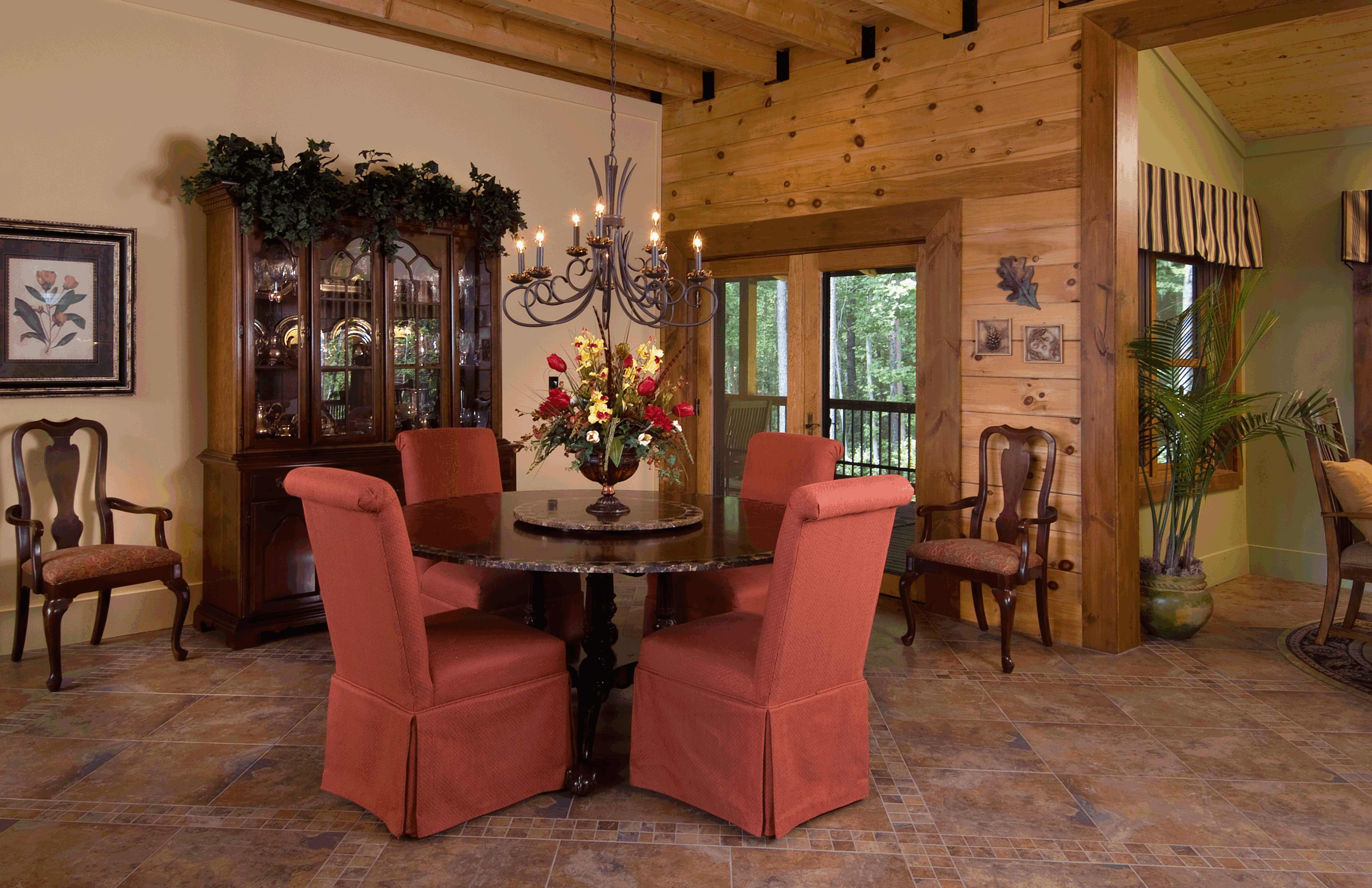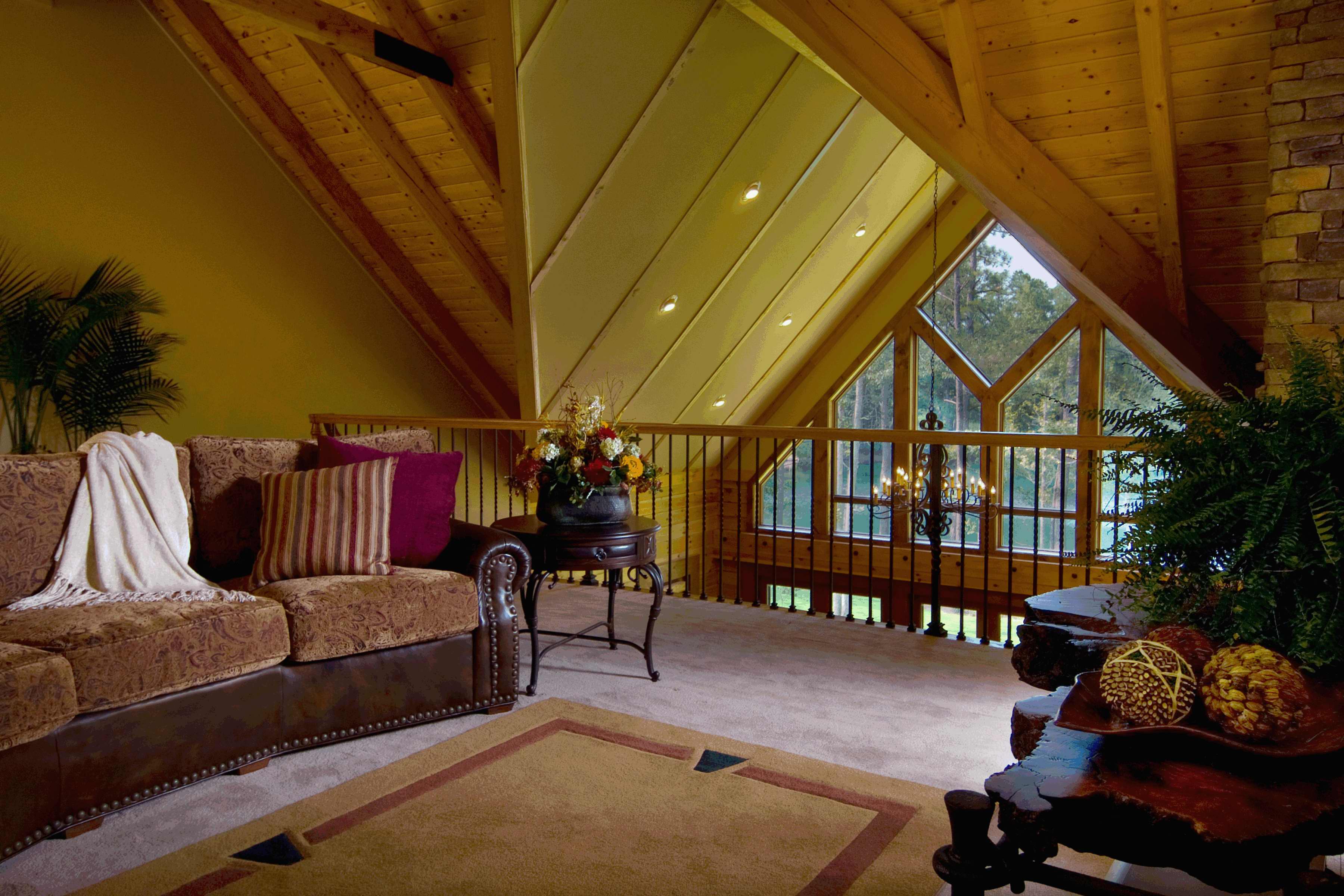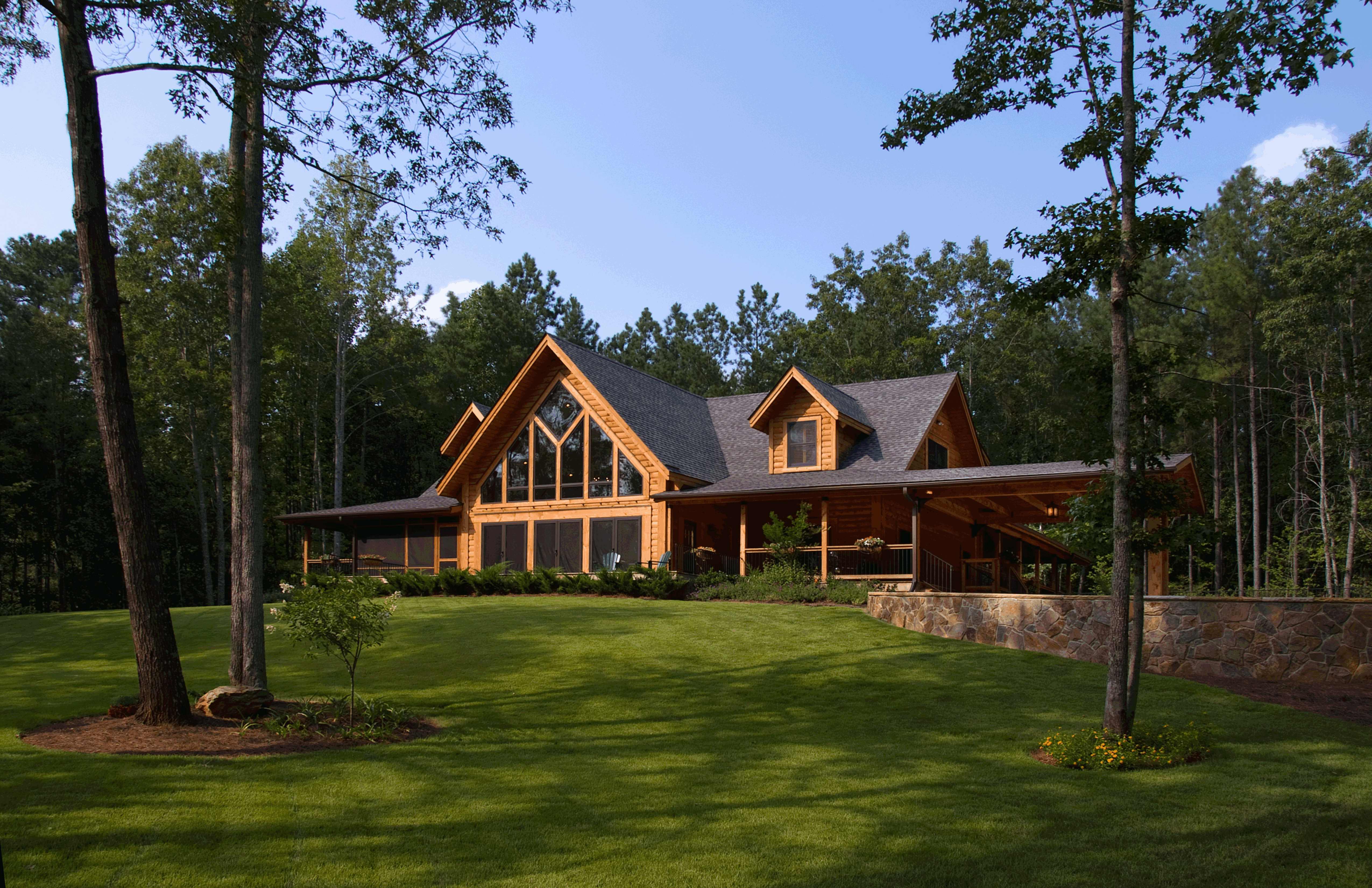 The Spring Hope log home makes a grand statement where ever it is. This dramatic masterpiece is a one and one half story charmer and incorporates many stylish features including two distinctive dormers across the front of the house plus a full wall of glass that pulls the outdoors in.