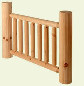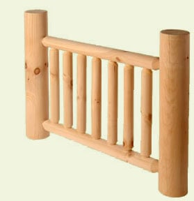 Find Your Dream HomeIncludes a 4" round non-coned top and bottom rail predrilled on 6" centers to accept the spindles and a sufficient quantity of 3" x 30" round spindles coned on each end to fit into the pre-drilled holes. All material is Eastern White Pine, CleartTreat (Borate) pressure treated. Sold in 8' and 12’ sections only.