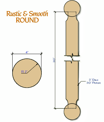 Includes a 4" round non-coned top and bottom rail predrilled on 6" centers to accept the spindles and a sufficient quantity of 3" x 30" round spindles coned on each end to fit into the pre-drilled holes. All material is Eastern White Pine, CleartTreat (Borate) pressure treated. Sold in 8' and 12’ sections only.